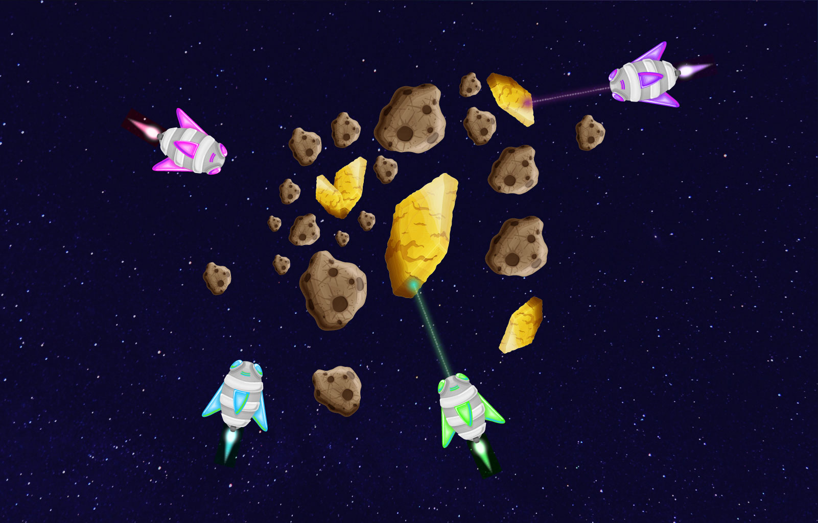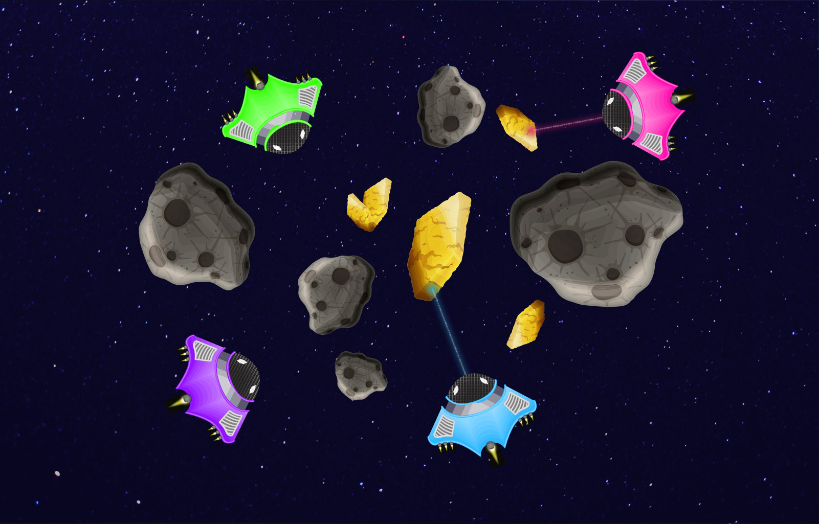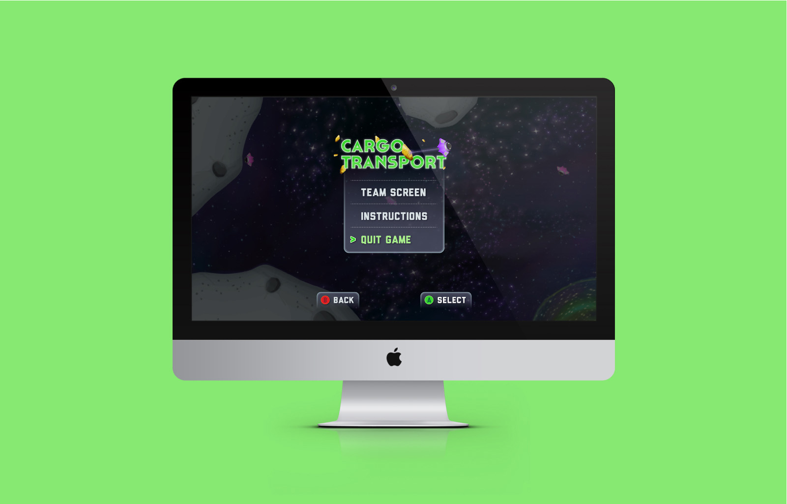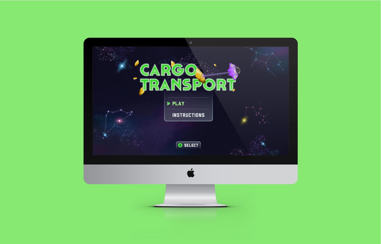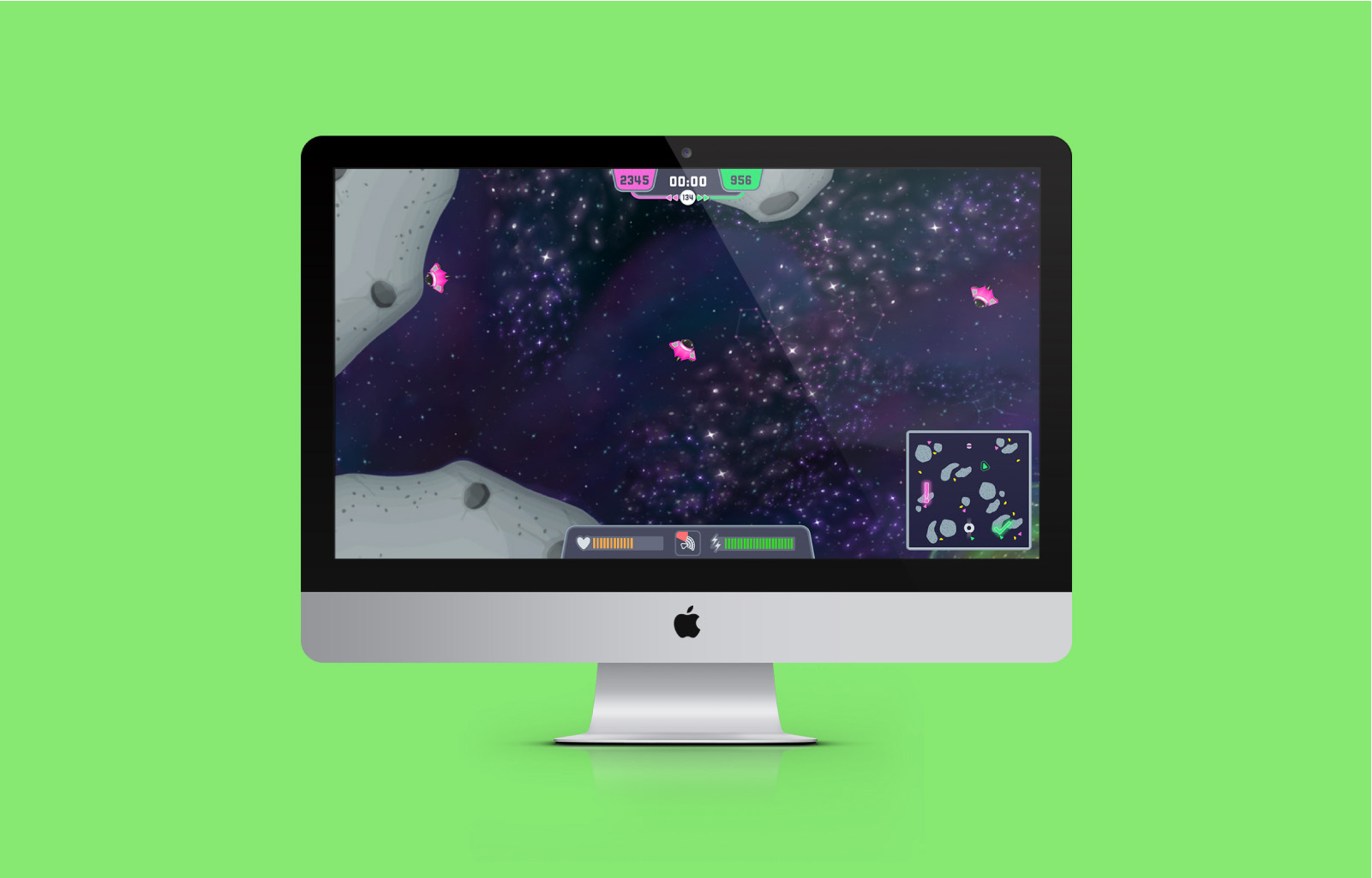 • Designing a colourful space theme UI that includes different components like a HUD (where players can see their character's vital statistics) and a mini-map (to help the players find their location in the game).
