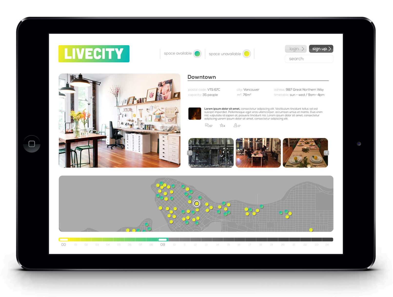 - Live City was created to improve the efficiency of the use of spaces based on their availability outside of operating hours. This web-app was developed during The Global Urban Datafest, a 48 hours hackathon to improve and shape the future of cities.