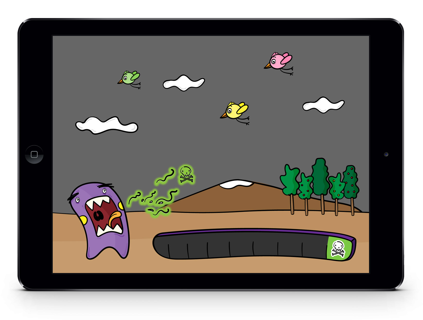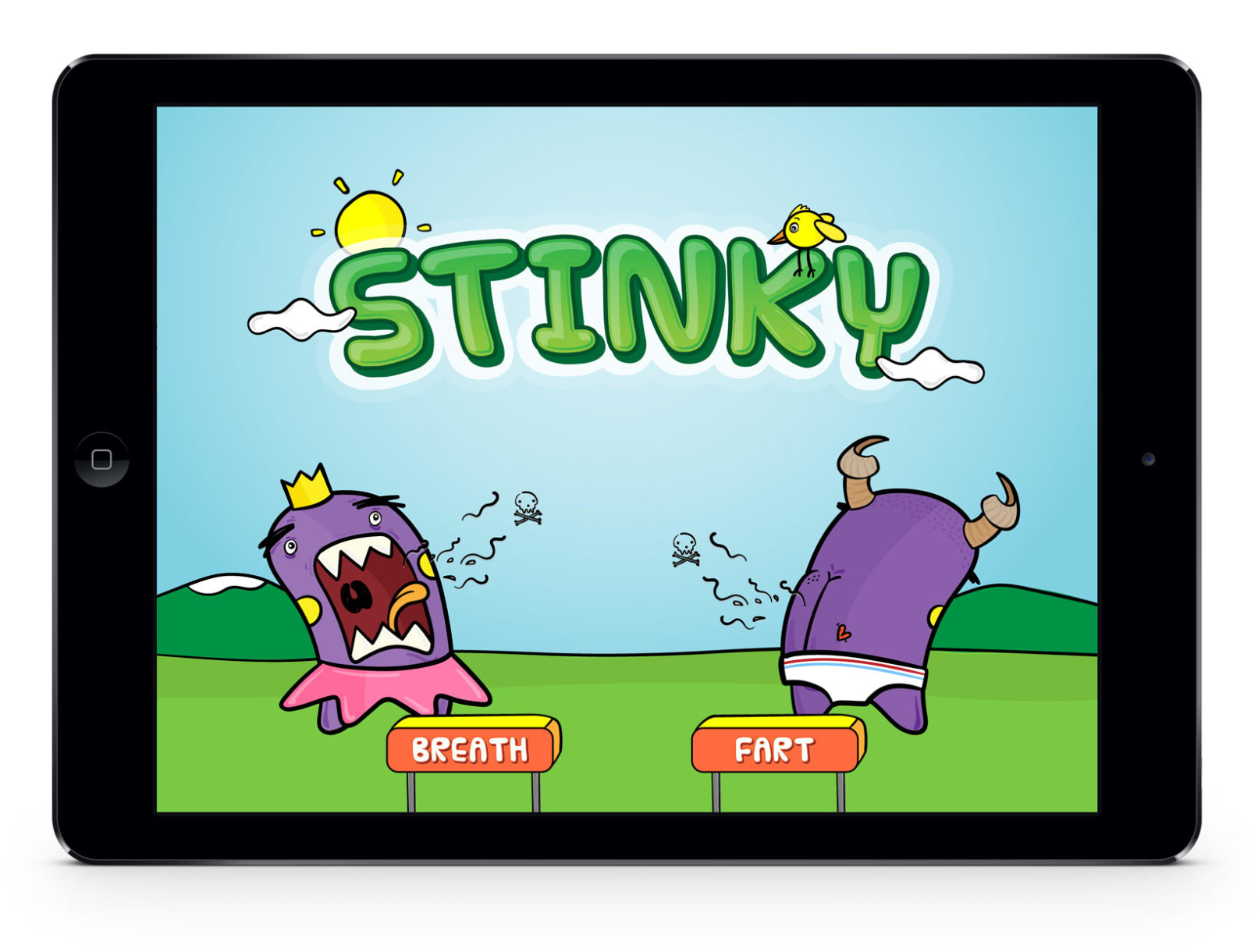 • The game 'Stinky' was created to gamify PEP therapy for children aged 6 to 12 and help them complete their daily physiotherapy in an easy-going way. This game was developed in 48 hours as part of the 'The Bella Project', a game jam created to improve Cystic Fibrosis treatment for kids.